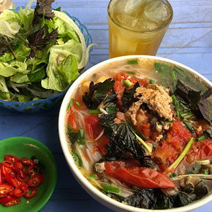 フォーと同じ米麺ですが、もちもちしたビーフンの様。実はベトナムではフォーよりもブンの方が定番。