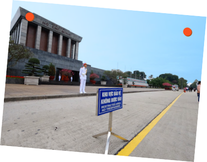 1年中冷房の効いた内部の部屋に永久保存処置をされたホーチミンさんの遺体が安置されています。おごそかな雰囲気の中で、白い制服を着た衛兵が常に廟を監視しています。